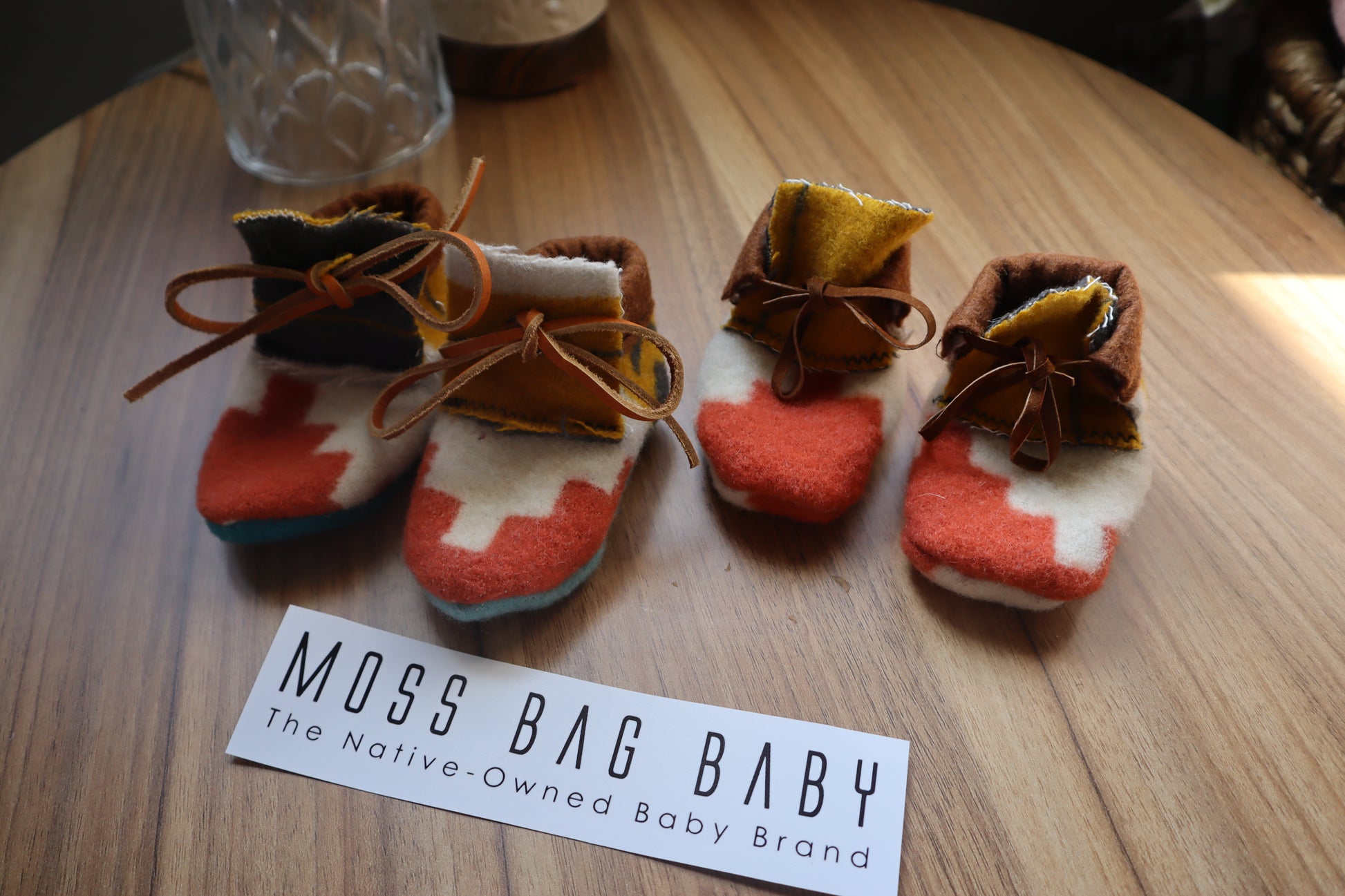 Celebrate the timeless beauty of Native American craftsmanship with these exquisite baby moccasins, thoughtfully handmade for your little one. Crafted from premium high-quality wool sourced from Pendleton and 8th Generation, these moccasins offer warmth, comfort, and a touch of cultural heritage. Designed for infants aged 0-3 months, each pair reflects a deep respect for tradition, featuring intricate details and authentic craftsmanship that honor Native artistry. Perfect for gifting or welcoming your newest family member, these moccasins are a beautiful symbol of love, culture, and quality.